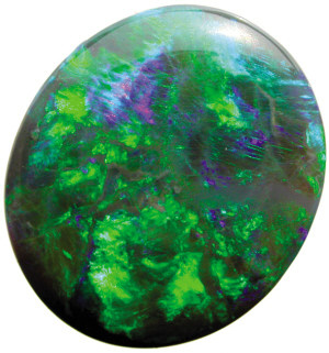 在深色的胚体色调上呈现出明亮色彩的,我们称之为黑欧泊。黑欧泊出产于澳大利亚