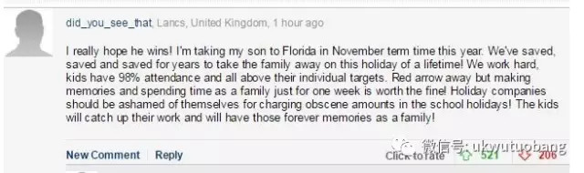 还有网友表示,相对于假期时间旅游公司30%-40%的加价,逃学的60英镑罚款简直太便宜了。↓↓