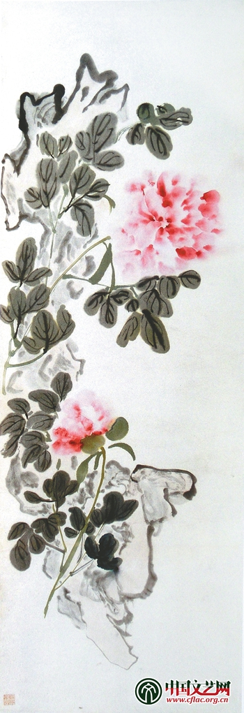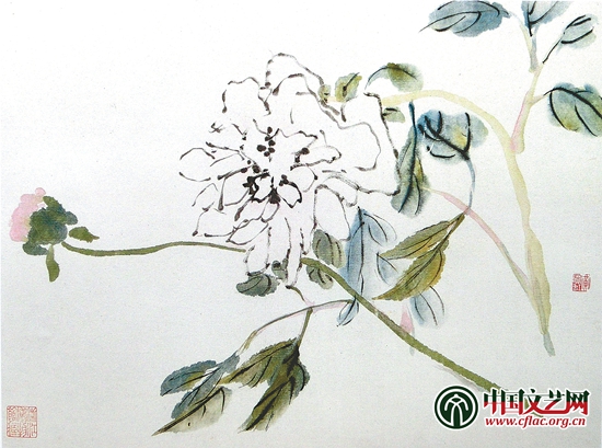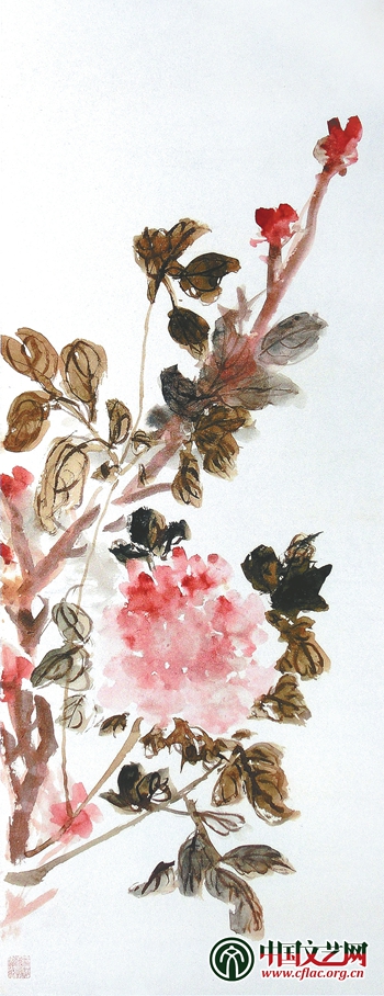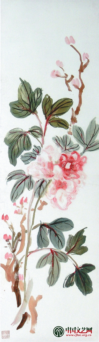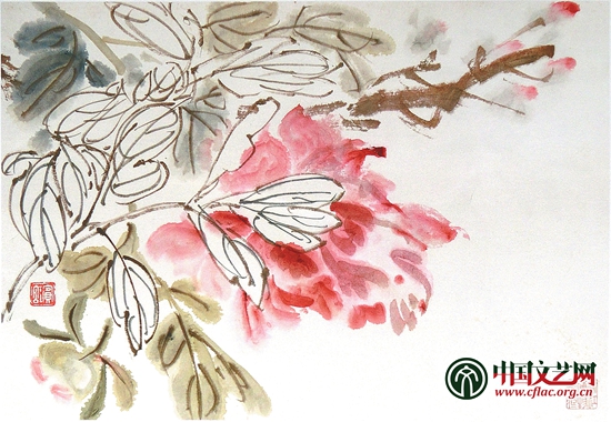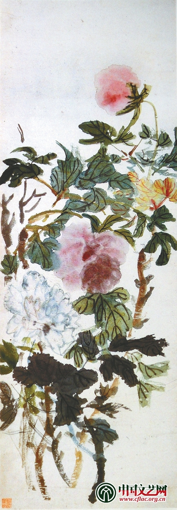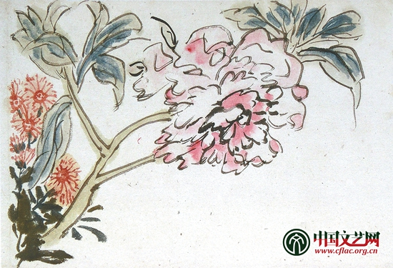 黄宾虹的花鸟画与吴(昌硕)、齐(白石)、潘(天寿)及其他花鸟画家有着明显的不一样,不一样的地方主要在于其作品没有所谓的“纵横习气”和“霸气”,有的只是天真之气、自然之气、平和之气。不仅其所画梅兰竹菊和山花野卉能让我们感到了率真的品格,就连画牡丹,在他的笔下也少了雍容华贵之姿和大富大贵之气,同样具有了艳而不俗、纯真自然的君子之风。