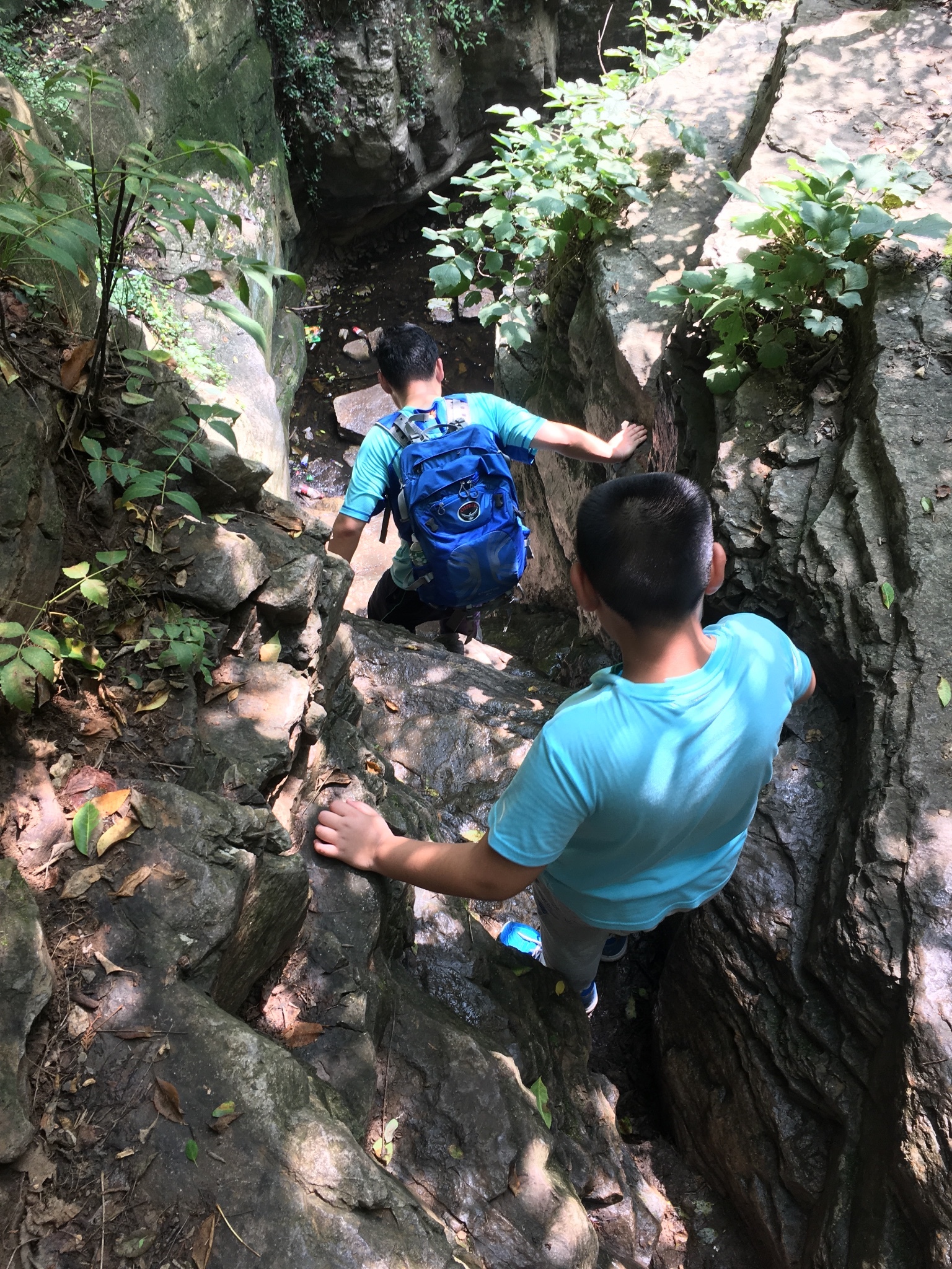 从这里开始在翻过小山头就可以进入一线天了,孩子在这里有些蔫了
