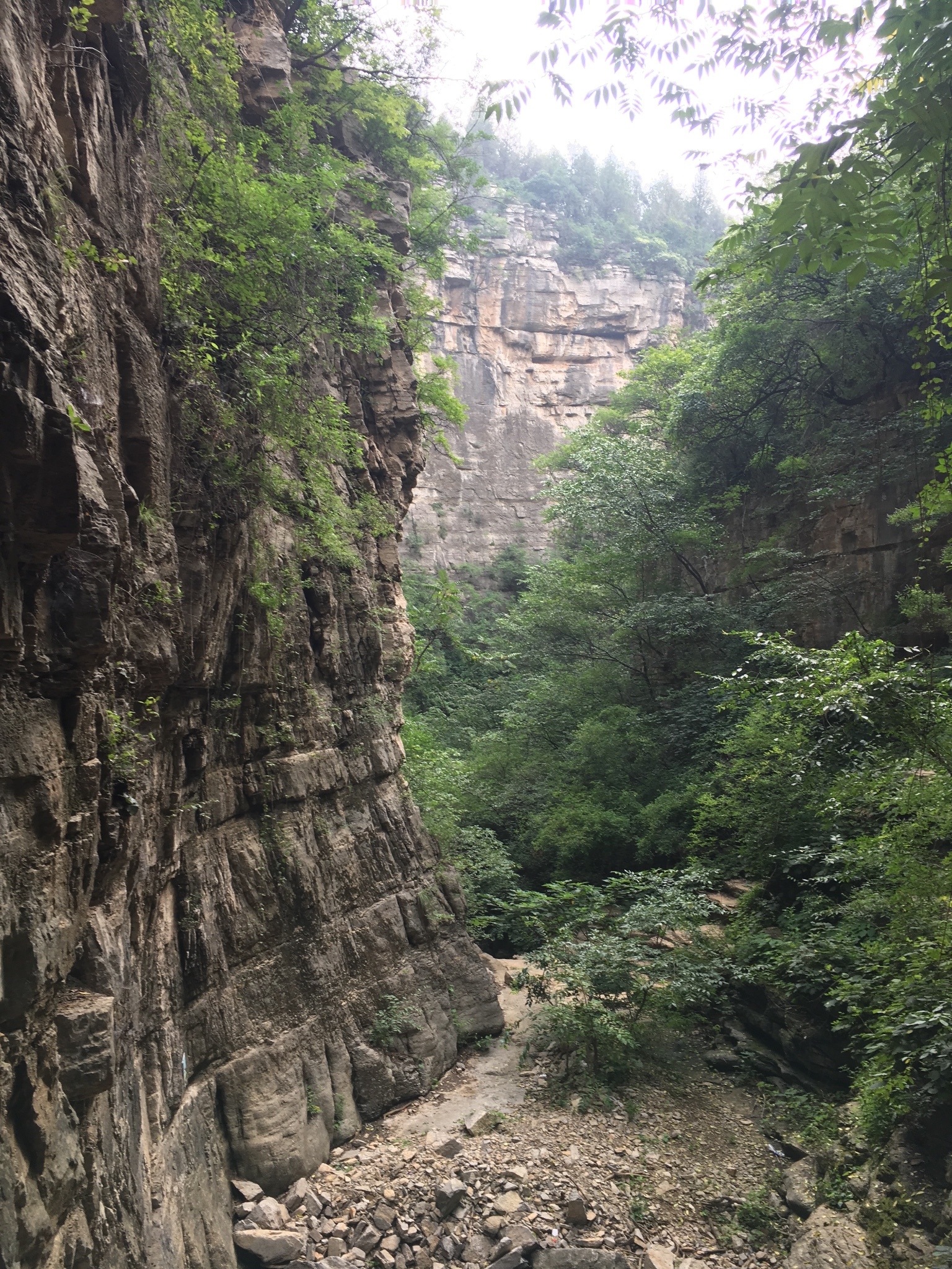 这是一处开阔平坦的三叉路口,其实是一个大瀑布,但是几乎看不到飞流直下的水瀑。黑峪有家著名的面馆,是整个山涧唯一处休息补给处,常去的人都知道黑峪面条味道很赞。其实是因为累到极点了。