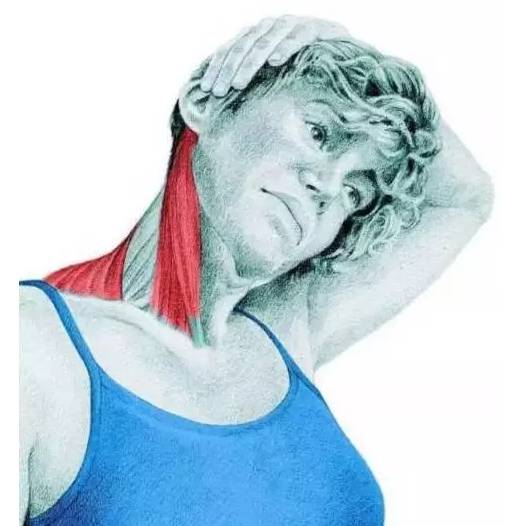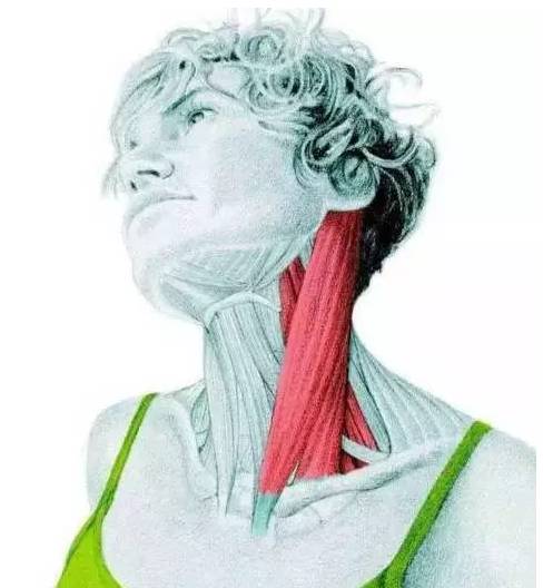 拉伸 :脖子往一侧转动,下巴稍微抬高,分离胸锁乳突肌;想加强拉伸,可以用手去帮忙转动。