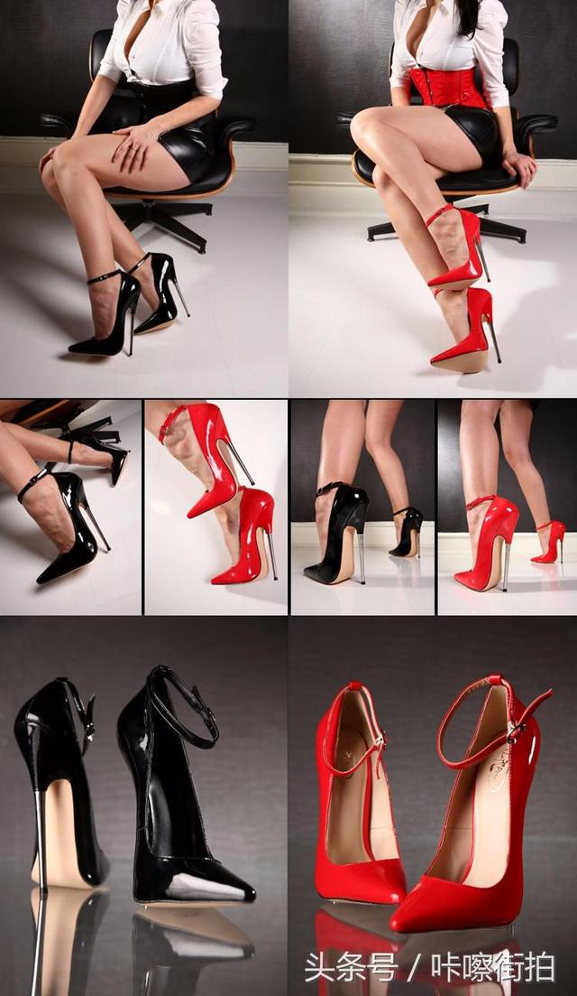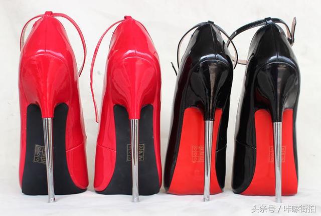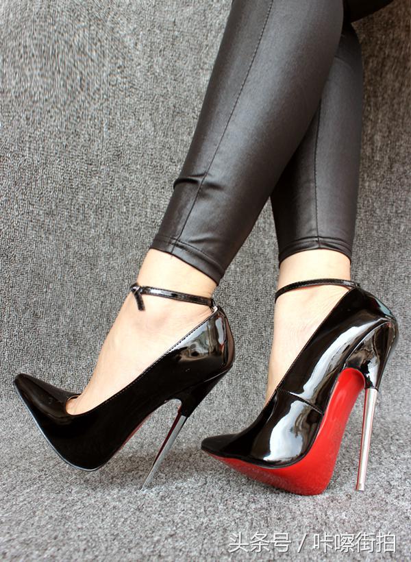 黑色不锈钢金属跟超级高跟鞋细跟腕带SM女王黑色款,情趣高跟鞋专卖店的镇店之宝,风靡欧美永远经典的恨天高,高跟鞋爱好者必备的超级高跟鞋。