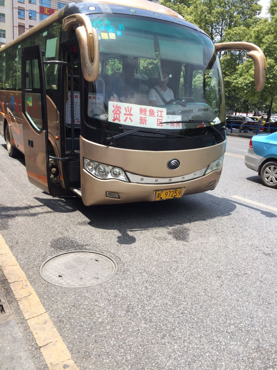 厕所是要收费的,怀着你都收了我钱我问一个问题不过分的想法,跑去问阿婆哪里有车坐到资兴,然后她就指着远处的公交站说就那个,看到没,哪里有辆黄色的车。哎呀呀,果然是我刚刚看到那个公交站,所以从火车站出站后往左边走200米左右到公交站即能乘坐到资兴的巴士。
