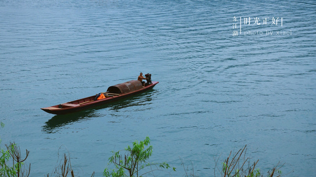 游兜率岛的船是有固定的排班的,买票的时候已经14:50多分,离这个时间最早的是15:30分那一趟,感觉等了超久才上船。还有,整个景区,到处都是讲粤语的广东人,恍惚间以为自己还在省内。一路上和几个当地人交谈,他们都说来东江湖旅游最多的是广东人。