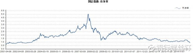 2015年9月份的时候,H股指数的市净率不到0.9,创下了2003年以来最低估值;市盈率也处于历史最低区域。可以说是非常的便宜。(下图是在2015年9月份的时候看H股指数的历史市净率估值,已经是03年以来最低