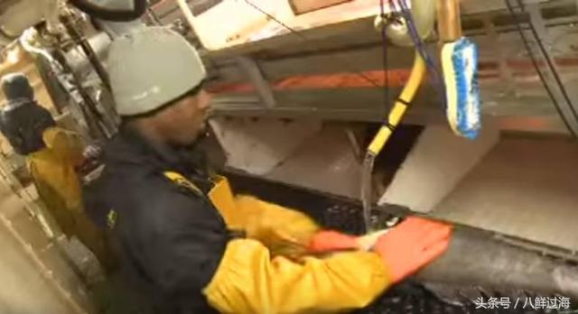 将捕获的银鳕鱼迅速去头、去尾、去内脏。
