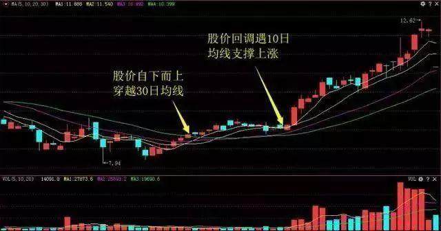 回眸一笑,是指股价K线自下而上穿越30日均线后出现回调,当股价K线回调到10日均线位置时,因受10日均线支撑再度上涨。该形态属于上涨中继形态,预示后市还将继续上涨。
