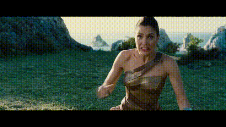 「双手相互交叉撞击」这pose对神力女超人来说可以说是招牌动作,无论神力女超人在《蝙蝠侠对超人:正义曙光》或《神力女超人》的