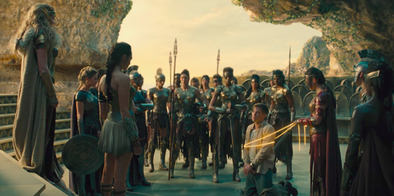 无论是从创造神力女超人当时的社会背景或赫拉克勒斯征服亚马逊女王的神话里,隐约能看见女性总是迫于男性掌权之下,而《神力女超人》想传达的