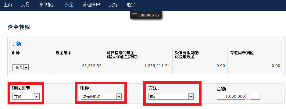 2、在盈透证券出金只需要去盈透账户管理发一个出金的通知,同时填上您本人的境外卡信息,一般需要填写卡号和SWIFT码,这个码是可以百度找到或者问银行客服。出金港币一般工作日当天到账,美元一般1-2个工作日。出金盈透30天免费一次,收款行港币收15元。