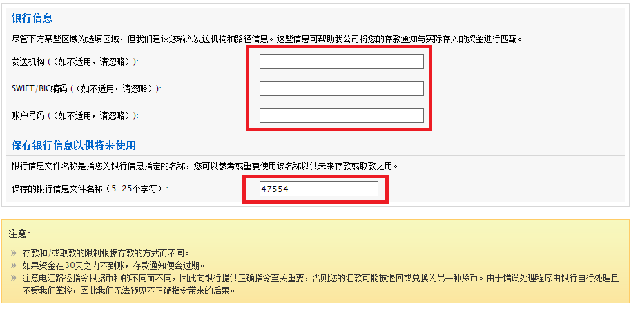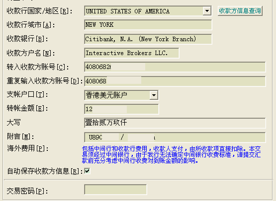 金额。中间的三个空栏不填,银行保存信息随便填,只是一个昵称。填写金额要注意,要留一两百元在境外卡账户,因为有账户管理费,以免账户关闭。