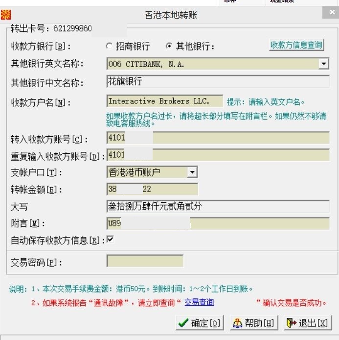 4、转账都需要同名账户,也就是开户盈透证券和开户境外卡要求是同一人,如果您是特殊情况,比如夫妻转账或者其他特殊情况,这个需要联系客服。