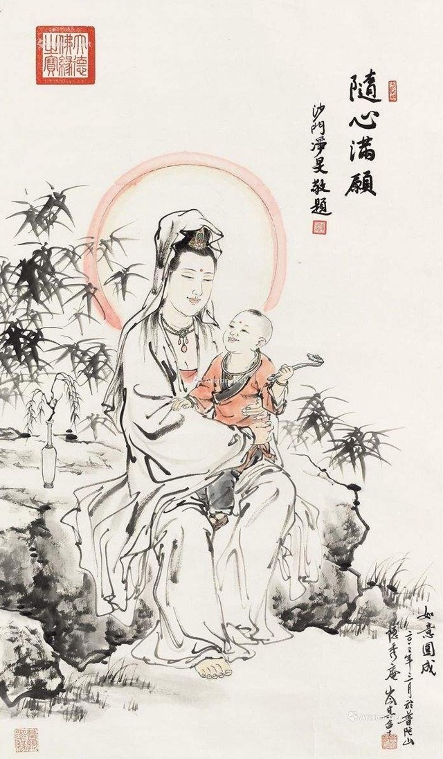 作为一名虔诚的佛弟子,画“观音像”就是岑其最直接的能表达内心想法和状态的手段。因为虔诚和热爱,所以卓然。岑先生的每一幅观音画像,都能表现出惟妙惟肖、神采飞扬、清新优雅的格调。