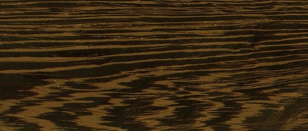 非洲桃花心木分布于西非、中非和东非。木纹交错,有时有波状纹理,在四开锯法加工的木材纹理处形成独特的鱼卵形黑色斑纹。疏松度中等,光泽度高;边