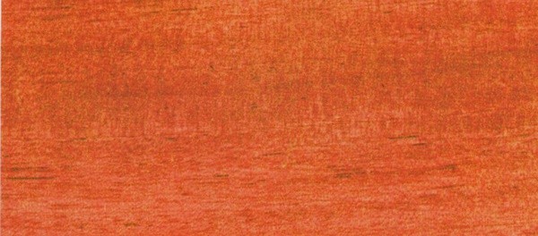 材区别明显,心材淡红色至桔红色,具黄褐色细条纹;边材浅黄褐色,常见蓝变,生长轮略可见。木材具光泽,具蜡质感。纹理深交错,结构粗,刨切面光滑,耐