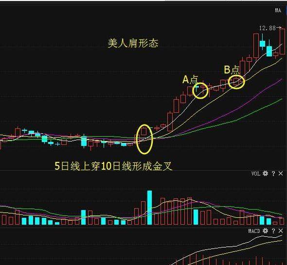 2.美人肩的技术特征,五日均线和10均线必须要来回不
