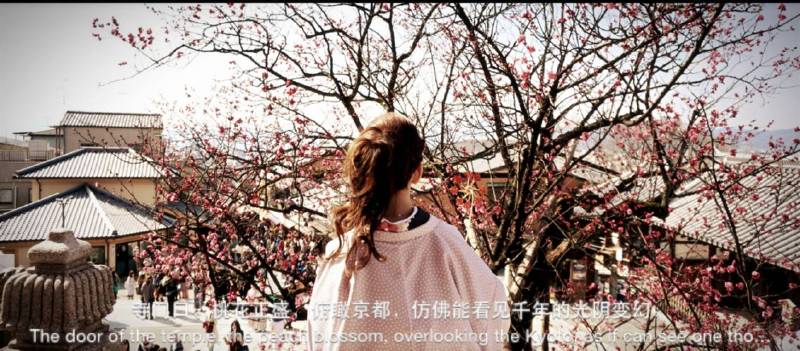 寺门口,桃花正盛,俯瞰京都,仿佛看见千年的光阴变幻