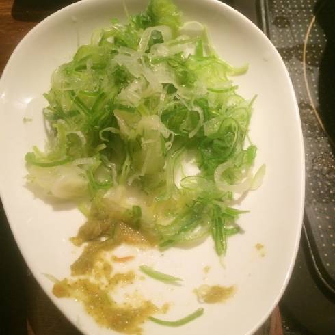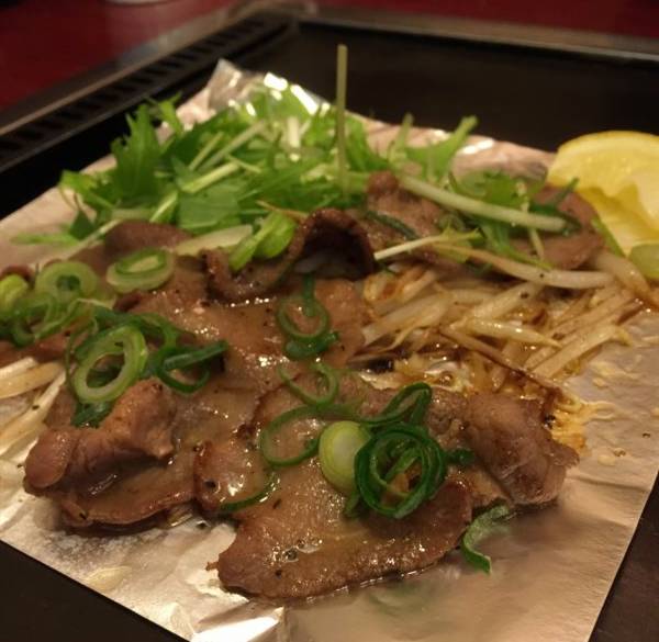 也是在锦市场旁边一家随便找的料理店出品铁板牛舌,上面撒的也是九!条!葱!