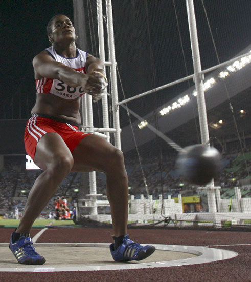 链球技术动作 2019-01-03 10:18阅读: http://blog.sina.cn/dpool/blog/u/6058999861 运动员持链球在投掷圈内,以旋转前进的动 链球作形式,使链球获得逐渐加速,最后将球投向远方。球的飞行远度,取决于链球出手初速度和出手角度。要获得最大的出手初速度,就是最大限度地加大旋转半径,适当增加旋转圈数。投掷链球超过80米的运动员, 出手初速度达到27~30米/秒, 出手的适宜角度为40- 44。链球运动员一般采用旋转3-4圈的方法。 投掷链球的完整技术是由持握器械、预备姿势、预摆、旋转和最后用力五部分组成。[1]