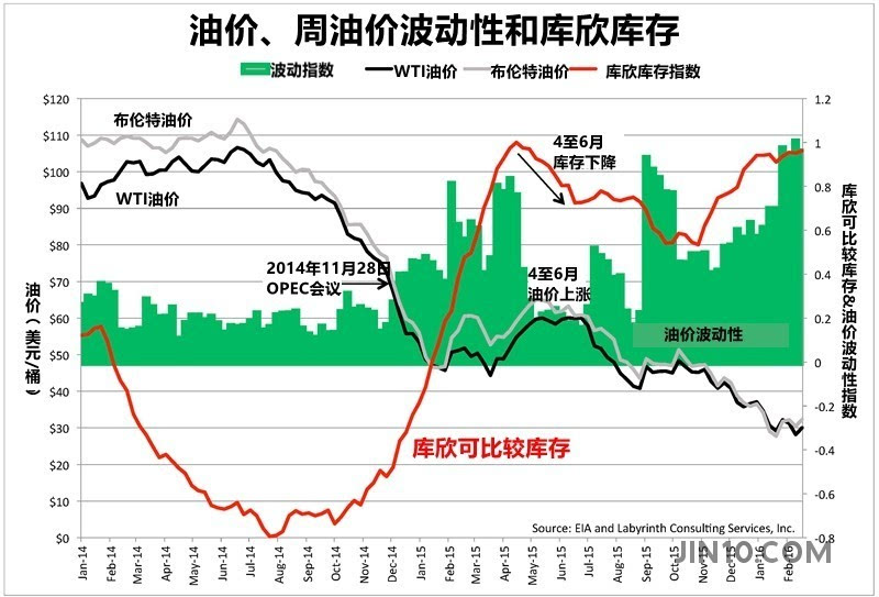 inventory)、WTI油价及原油市场波动性指数之间的比较: