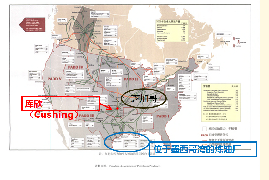 另外,美国的原油生产地与炼厂所在地呈现出强烈的地域间不平衡,这对价差的形成有重要影响。按照美国政府的划分,全美共分为五个国防石油管理区(Petroleum