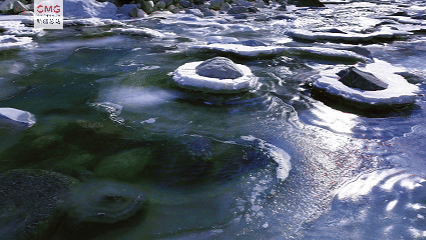 从天空俯瞰,青蓝色的冰体绵延数公里,静卧于山谷之间,在阳光下泛出莹润光泽。冰川表面形成的冰裂缝、冰蘑菇等自然景观形态各异,见证着地质演变与自然伟力。融冰沿冰面缓流形成天然溪涧,潺潺水声与远处巍峨雪山、近处摇曳的干草共同勾勒出动静相宜的立体冬景。