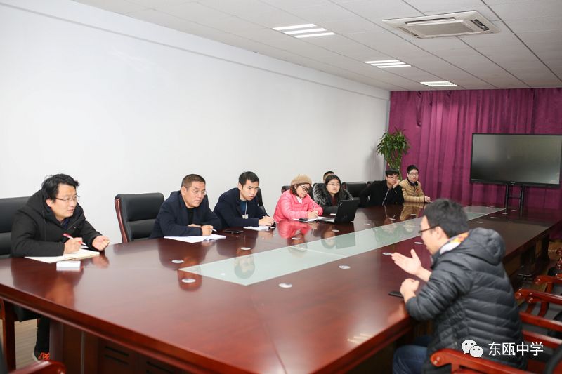 根据东瓯中学教学计划安排和与盟校杭州学军中学的工作交流,杭州学军中学各学科竞赛金牌教练于2018年1月3日下午莅临温州东瓯中学对我校学生进行面授指导。东瓯中学校长周丐亮、副校长王振哲亲切接待了金牌教练一行并举行了座谈会。参加座谈会的还有学军中学在我校担任教学工作的马少卿老师、刘丽莉老师及黄彬老师。