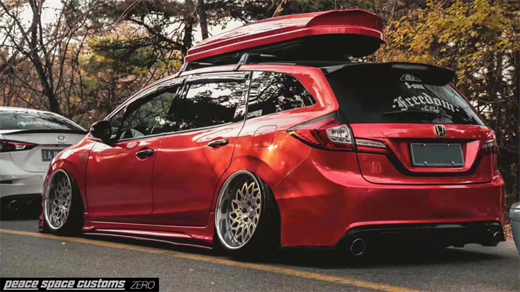 当本田杰德经过气动避震改装后,整车的姿态瞬间焕然一新。车身线条更加流畅,低矮的身仿佛紧贴地面,展现出一种蓄势待发的姿态。无论是静止还是行驶中,都散发出强烈的动感气息。低趴姿态不仅让本田杰德在外观上更加抢眼,同时也提升了车辆的操控性能。