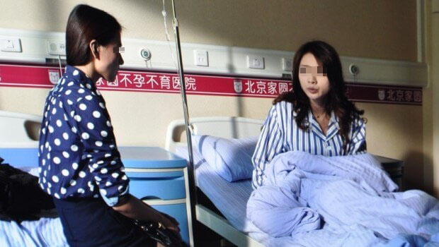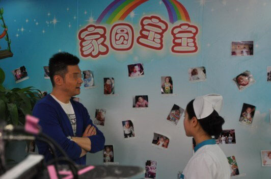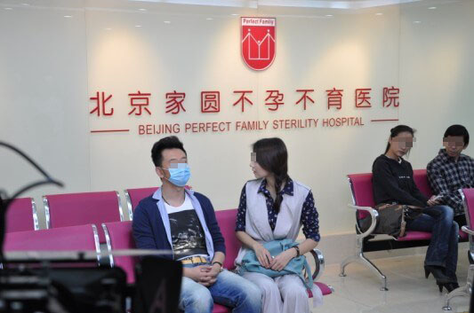 剧中“桃子”正坐在北京家圆医院候诊厅等待做身体检查的“果然”