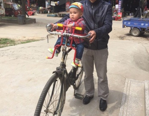 那个年代长大的同学应该都知道前面的三脚架帮一个小的椅子,可以让小孩子很嗨皮地坐在前面。(暴露年纪了)
