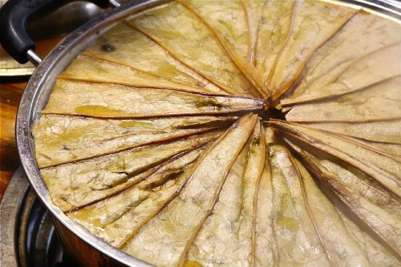 而且有别于普通的桑拿鸡,用的是荷叶铺底,蒸汽分子来得更加的细腻和浓密。