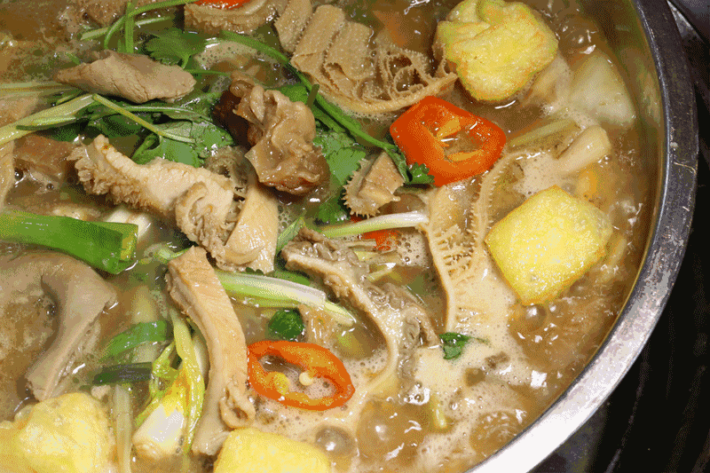 掀开盖子,才发现箇中奥秘,原来鸡骨都垫底去煲鸡汤了,吃完鸡再来一碗鸡汤,真的是说不出的舒服,这就是乡村美食的特点,不讲究东西的精致,不过很讲究美味的原汁原味。