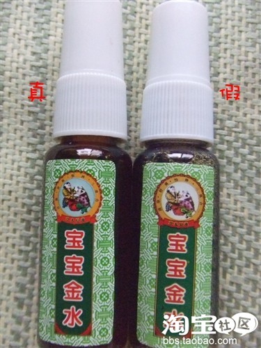 气味没办法拍下来,真货的宝宝金水有中药味,假货就是花露水味,刺鼻了点。