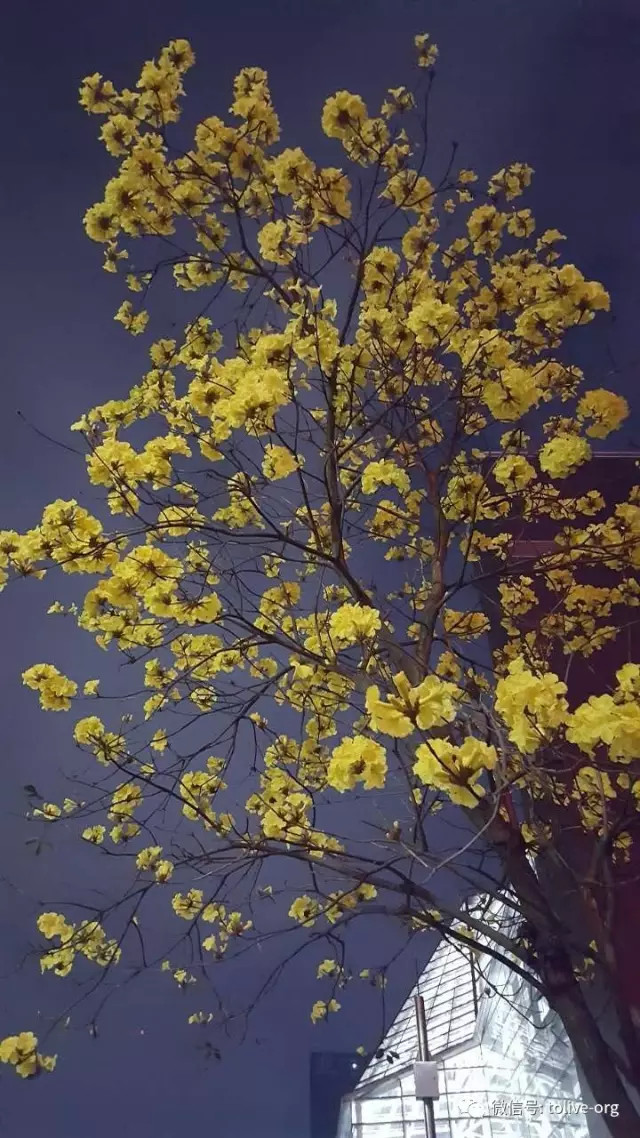原来它叫黄花风铃木,就连名字都那样诗意盎然,就连名字都那样不落俗套,就连名字都那样生动可爱。黄花风铃木,正名为黄钟木,别名黄金风铃木、巴西风铃木、伊蓓树,是一种会随着四季变化而更换风貌的树。春天枝条叶疏,清明节前后会开漂亮的黄花;夏天长叶结果荚;秋天枝叶繁盛,一片绿油油的景象;冬天枯枝落叶,呈现出凄凉之美,这就是黄花风铃木在春、夏、秋、冬所展现出不同的独特风味。(资料来源网络)