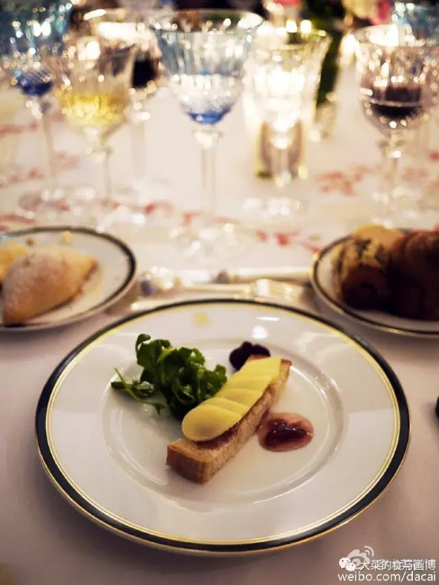 当天的开胃菜是生蚝、鹅肝、巴约纳火腿配卢瓦尔河谷干白。