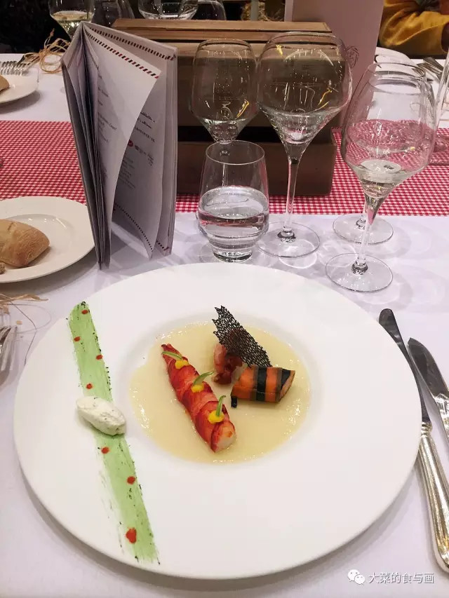 前菜是蓝龙虾配苹果冻