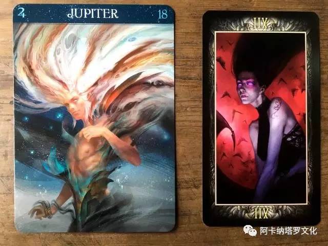 走心的我发现,巴尔贝丽塔罗牌和这副神谕卡中的人物或元素有许多共同点,甚至一模一样,也许是因为本就是同一个人,但从塔罗牌到神谕卡,巴尔贝里和芭芭拉摩尔用了相似的元素却表达和融入了不同的含义。神谕卡不仅更加新颖,在星座、行星和元素的影响下它被赋予了更广阔的含义,在解读上也更加自由,为解读者打开了更多想象空间。