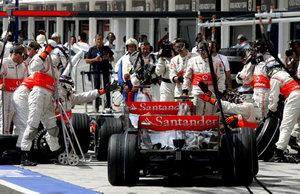 迈凯轮1号赛车停在维修区,工作人员举手做倒计时,三、二、一、零,阿隆索松开离合返回赛道。这样的场景在距排位赛结束2分钟时又重复了一次,阿隆索的队友汉密尔顿因为没有足够的时间换胎并通过即时点而失去最后一次计时圈。