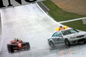 欧洲大奖赛倒数第?圈,阿隆索在5号弯外线力压马萨强行超车。两部赛车甚至发生碰撞,但没有出现事故。此前纽博格林下起小雨,一直落后马萨的阿隆索在湿地上更具优势,他迅速缩小距离并完成超车。