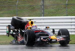 韦伯赛车尾巴不见了!维泰尔秃着鼻子从一旁溜走!出事前两人排位第二和第三,本有希望创造个人和车队的最佳战绩。导演慌忙的切换着镜头,但是没有一台摄影机完整的记录到这起事故。赛后矛头指向领先者汉密尔顿,但此事最终也没有一个圆满的解释。