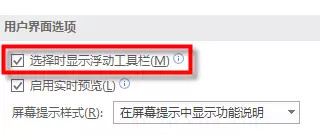 点击【文件】-【选项】-【常规】-勾选【选择时显示浮动工具栏】