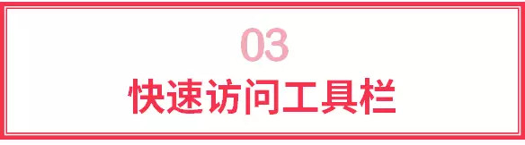 注:「快速访问工具栏」中工具控制在4、5个,不然放多就难找了,这可就不叫「快速」工具栏啦~