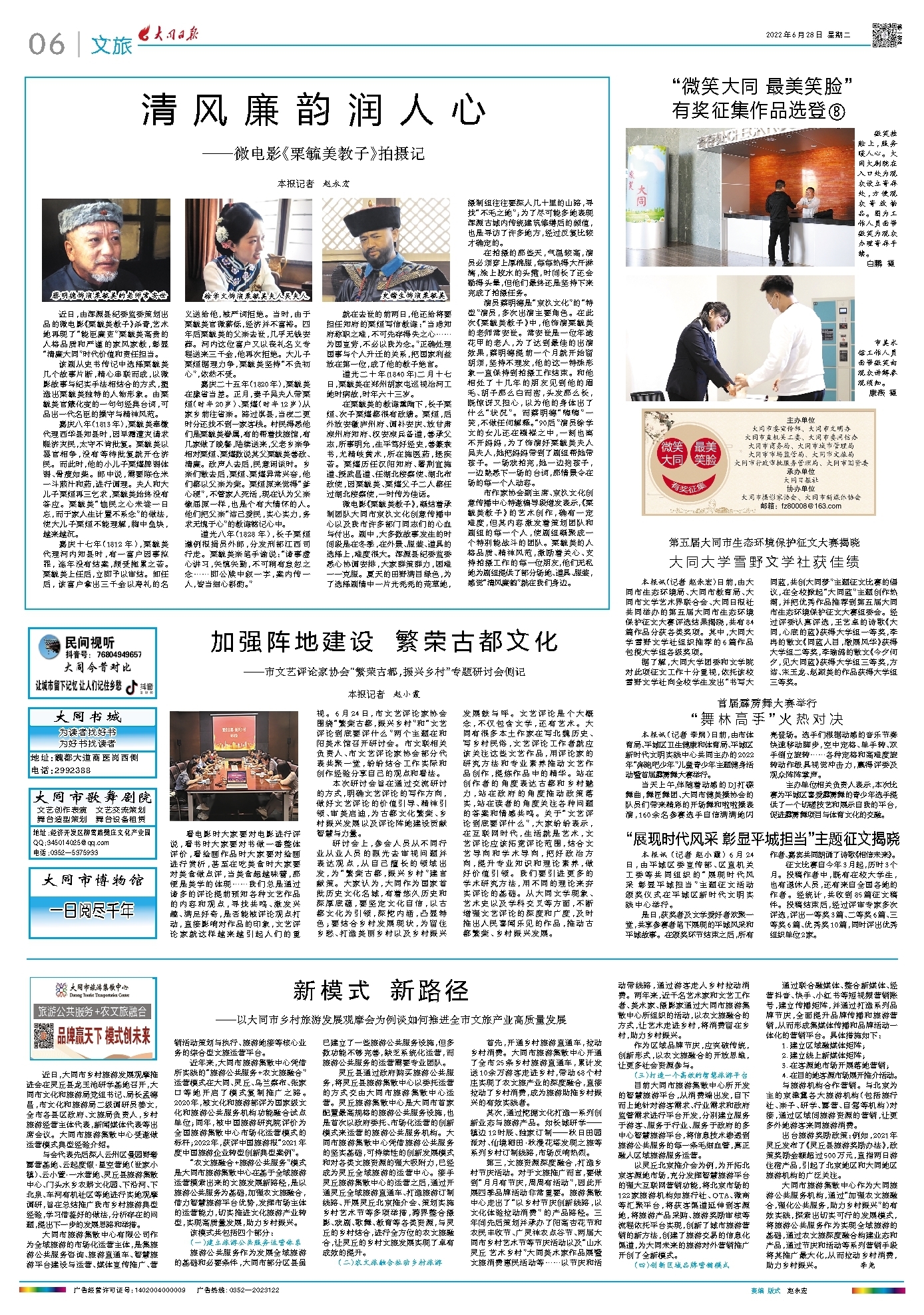 研讨会上,参会人员从不同行业从业人员的眼光去审视问题并表达观点,从自己擅长的领域出发,为“繁荣古都,振兴乡村”建言献策。大家认为,大同作为国家首批历史文化名城,有着悠久历史和深厚底蕴,要坚定文化自信,以古都文化为引领,深挖内涵,凸显特色;要结合乡村发展现状,为留住乡愁、打造美丽乡村以及乡村振兴发展鼓与呼。文艺评论是个大概念,不仅包含文学,还有艺术。大同有很多本土作家在写北魏历史、写乡村民俗,文艺评论工作者就应该关注这些文艺作品,用评论家的研究方法和专业素养推动文艺作品创作,提炼作品中的精华。站在创作者的角度表达古都和乡村魅力,站在政府的角度推动政策落实,站在读者的角度关注各种问题的答案和情感共鸣。关于“文艺评论到底要评什么”,大家纷纷表示,在互联网时代,生活就是艺术,文艺评论应该拓宽评论范围,结合文艺导向和学术导向,把好政治方向,提升专业知识和理论素养,做好价值引领。我们要引进更多的学术研究方法,用不同的理论来夯实评论的基础。从大同文学现象、艺术史以及学科交叉等方面,不断增强文艺评论的深度和广度,及时推出人民喜闻乐见的作品,推动古都繁荣、乡村振兴发展。