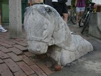 淮镇石马(新声韵) 2014-02-17 22:09阅读: http://blog.sina.cn/dpool/blog/u/1361386981 淮镇石马(新声韵) 赵刚 滹沱跪卧啃青禾,低首嘶鸣韵作歌。 蹄踏晨阳燃火焰,鬃飘夜月沐天河。 奋身跨跃山和涧,竖耳聆听水与波。 步止桥头息故道,途中轶事待吟哦。 注: 淮镇石马:为整块青石雕刻而成,约长5尺、高3尺,通体肥胖,昂首挺胸,神态安然,前右腿伸出,左腿蜷跪,两后腿全力蹬地,似久卧欲立。头部缰套齐全,背上有鞍鞯、马蹬,鞯四边刻有缠枝的牡丹,中间是变化云纹,造型质朴厚重,颇具汉唐石雕的风韵。石马造型生动优雅,纹饰雕刻精巧美观,有关专家从体态和纹饰分析,推断石马为明朝遗物,有较高的历史和艺术价值。1995年被定为“沧州市重点文物保护单位”。