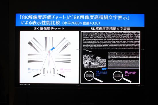 下图分别将4K电视和8K电视进行对比,表现不同电视对同一测试图的表现能力。