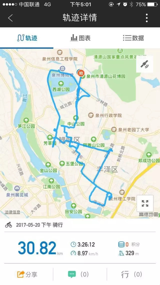 ▲这是我们今天的骑行线路图及公里数。此次我们的骑行线路为:绵绣庄民间艺术园——朝天门——中山公园——威远楼——钟楼——西街——肃清门广场——旧馆驿——中山路——文庙——文化宫——关帝庙——飞天迎宾城雕——领秀天地——泉州晚报大厦——万达广场——丰泽广场——新华桥——芳草园——甲第门文创园——西湖公园——绵绣庄民间艺术园。可以说,这条线路几乎将泉州古城所有的精华景点都涵盖在内,只是今天我们有骑行任务,不能细细游览,日后再组织大家过来寻味泉州古城。