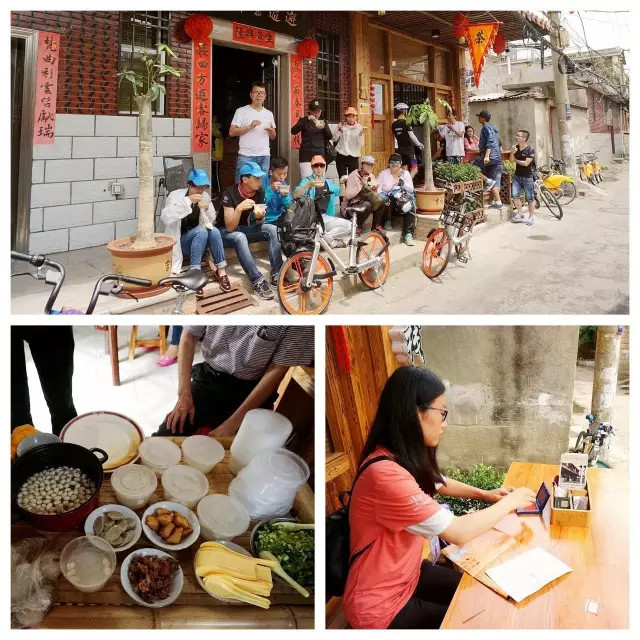 ▲下午五点前,我们回到终点,在锦绣庄民间艺术园里的“骑士生活家”,排队领取活动经费。