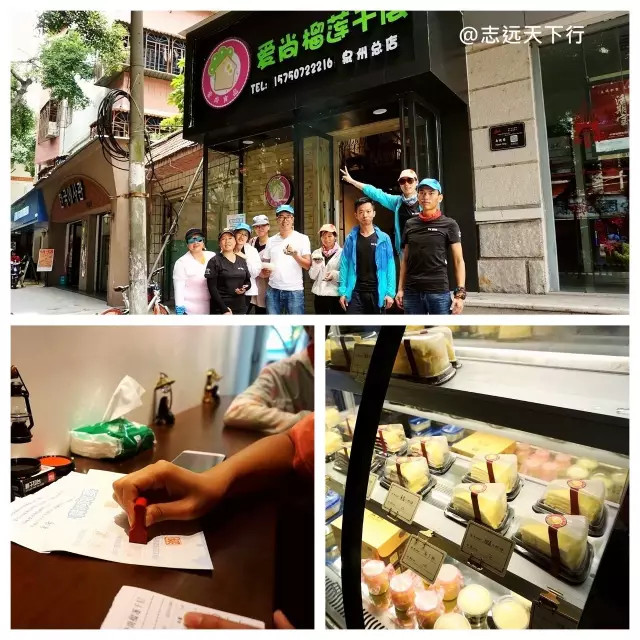 ▲第二家商户任务点——“爱尚榴莲千层”,还是老规矩,消费50元,买了两块榴莲和芒果蛋糕,味道还不错喔。盖章合影。