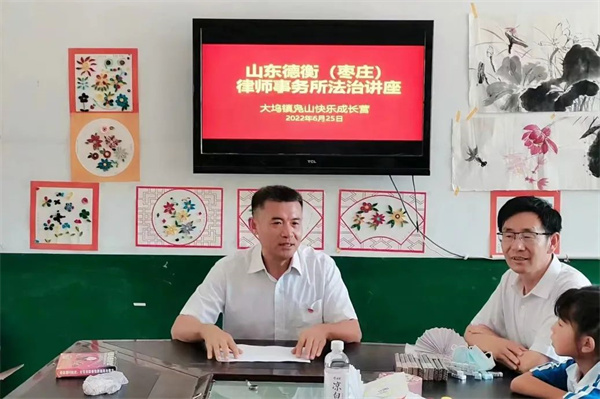 枣庄市人大代表、德衡枣庄所党支部书记冯克法律师为孩子们带来一场《法治讲座》,叮嘱盛夏酷暑要小心避暑,不要野外玩水,外出要及时向老师们报告,提高安全意识,加强自我保护。